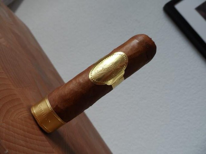 Voor deze lijn is Davidoff afgestapt van zijn traditionele witte versierselen, die plaatsgemaakt hebben voor goud. Het zou me trouwens niet verbazen als deze bandjes echt van goud zijn, want deze sigaar is aardig aan de prijs, iets van 13 euro.